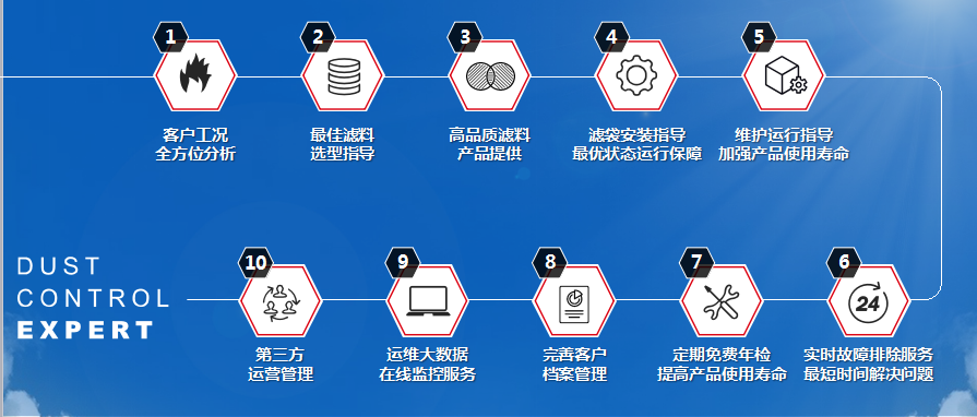 提供售前、售中、售后的全環(huán)節(jié)專業(yè)陪伴:客戶工況*********分析、合理濾料選型指導(dǎo)、高品質(zhì)濾料產(chǎn)品提供、濾袋安裝指導(dǎo)***優(yōu)狀態(tài)運(yùn)行保障、維護(hù)運(yùn)行指導(dǎo)、實(shí)時(shí)故障排除、定期免費(fèi)年檢、完善客戶檔案管理、運(yùn)維大數(shù)據(jù)在線監(jiān)控及第三方運(yùn)營(yíng)管理服務(wù)。